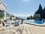 Disponible dès maintenant pour une location longue durée. Villa de luxe sur deux niveaux, offrant une vue imprenable sur la mer depuis toute la propriété. Accès facile par une allée de plain-pied. La pièce de vie principale comprend un hall d’entrée, une grande cuisine entièrement équipée, un salon et une salle à manger avec cheminée, donnant accès à une spacieuse terrasse couverte offrant une vue imprenable sur la piscine privée à débordement avec coin barbecue, ainsi qu’une chambre avec salle de bains privative. Au niveau inférieur, trois autres chambres disposent toutes d’une salle de bains privative, de placards intégrés et de la climatisation réversible indépendante. Plusieurs terrasses et un accès aux jardins sont également disponibles. Le port de Jávea et toutes les commodités sont accessibles en quelques minutes en voiture.
